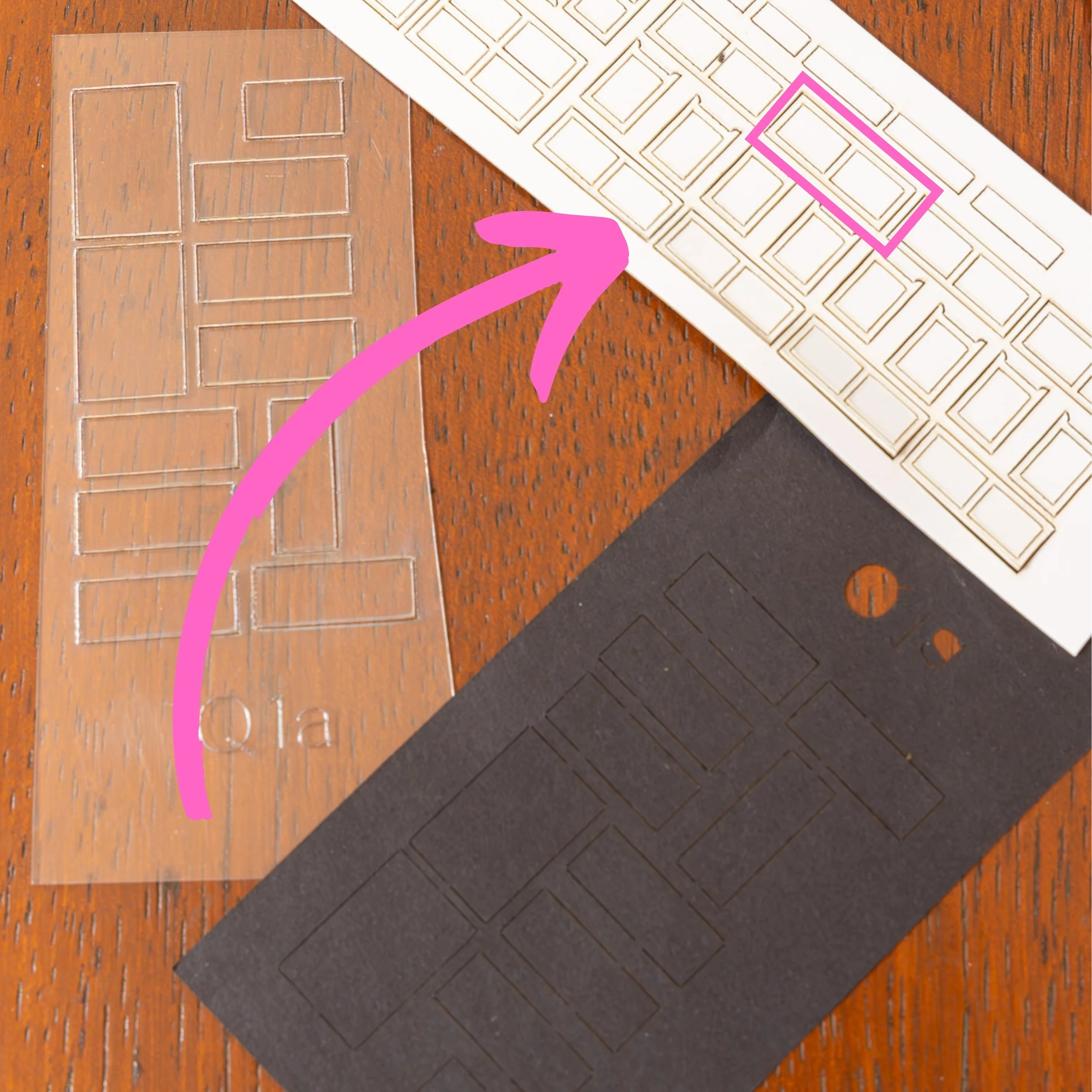 5. Remove the window frame sticker from the backing sheet and push out the rectangles in the centre
