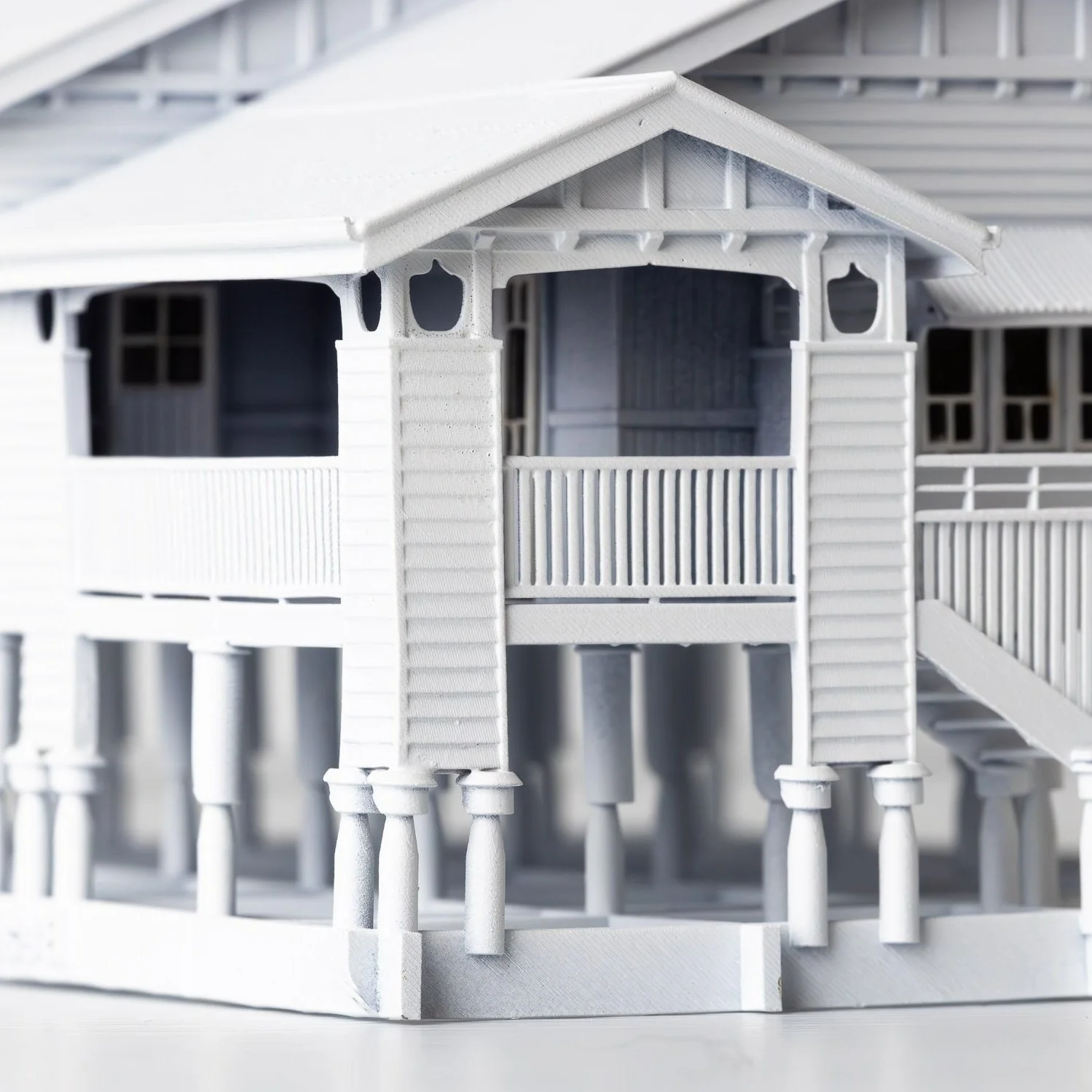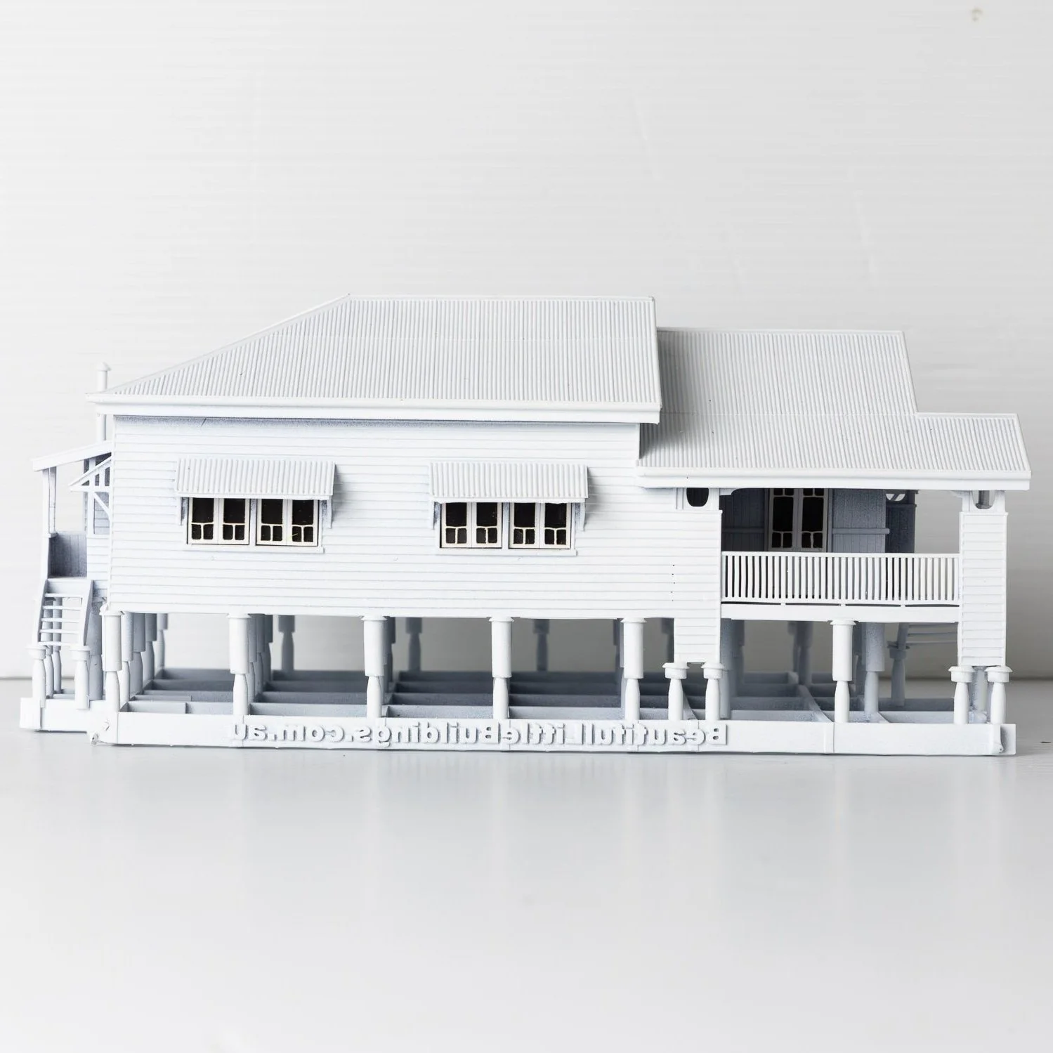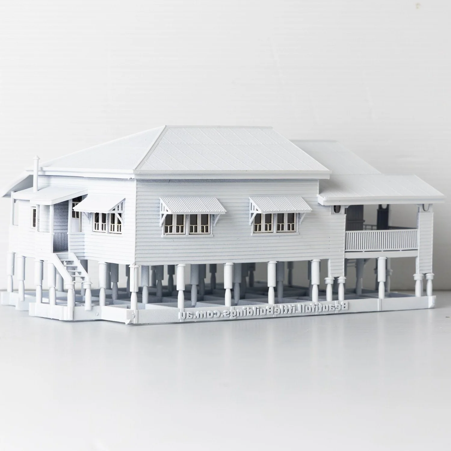 Bring a slice of sunny Queensland into your home with this beautifully detailed 3D-printed model of an iconic, grand Queenslander house – complete with a asymmetrical, short-ridge corrugated iron roof, charming wrap-around verandah, kitchen wing and timber stumps! 🌴